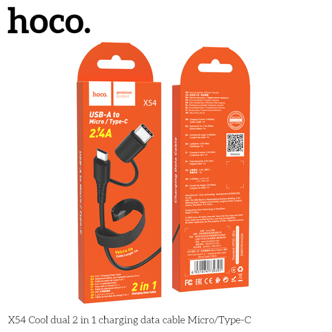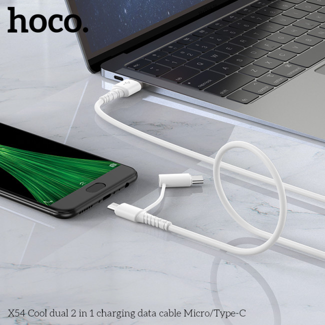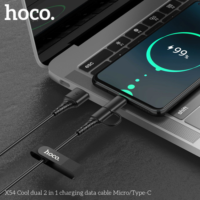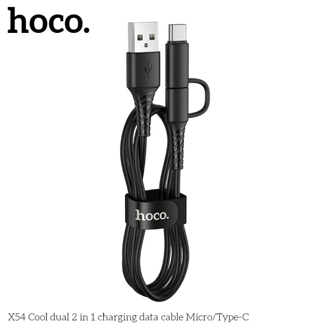 - Кабель Hoco Combo Micro USB / Type-C Cool dual 2 in 1 charging data cable X54 |1M, 2.4A|