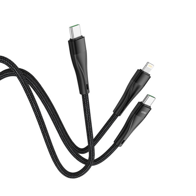 - Кабель Hoco Combo Type-C to Type-C / Lightning Super U102 |1.5m, 3A,100W/20W|