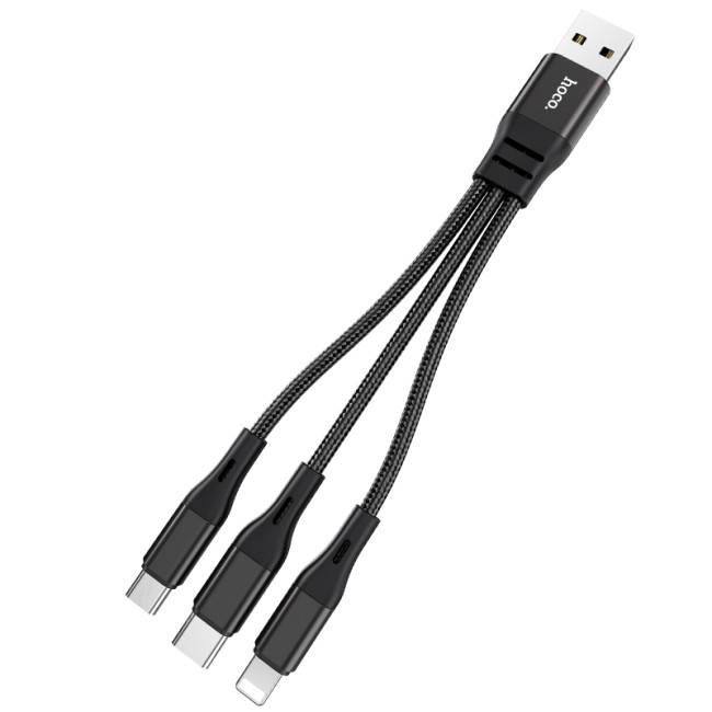 Кабель Hoco Combp 3-in-1 Lightning+Micro USB + Type-C Harbor charging cable X47 |0.25m, 2.4A|