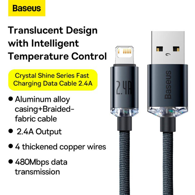 - Кабель Baseus Lightning Crystal Shine Series |2M, 2.4A| (CAJY000101)