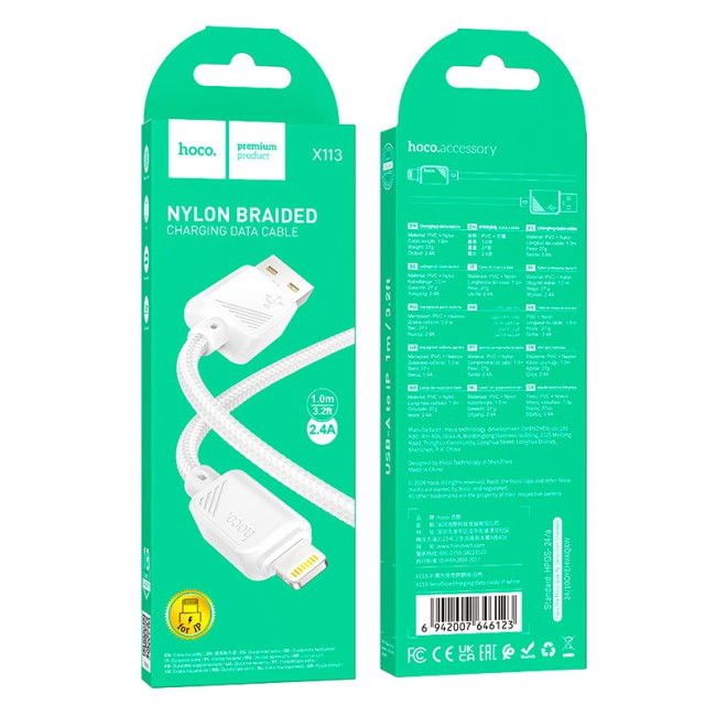 Кабель HOCO X113 з роз’ємом Lightning — це надійний аксесуар для зарядки та синхронізації пристроїв Apple. Він підтримує струм до 2.4A, що забезпечує стабільну та ефективну зарядку iPhone та інших сумісних гаджетів. Завдяки довжині 1 метр кабель є зручним для повсякденного використання вдома, в офісі або в автомобілі, а міцне нейлонове обплетення підвищує його зносостійкість і довговічність.