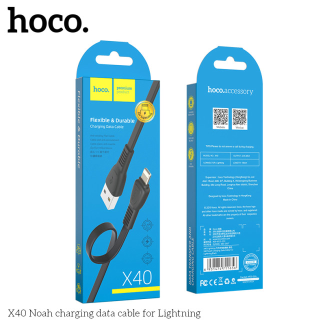 Кабель Hoco Lightning TPE Flat Noah X40 |1m, 2.4A|