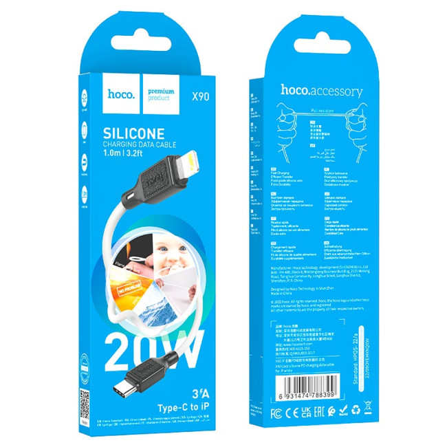 - Кабель Hoco Type-C to Lightning cool silicone PD charging data cable X90 |1m, 20W, 3A|