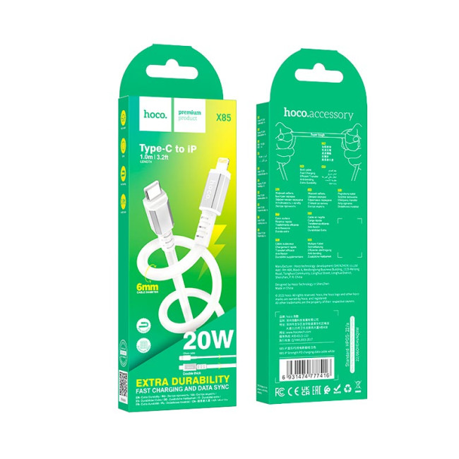 - Кабель Hoco Type-C to Lightning Strength PD charging data cable X85 |1m, 20W|