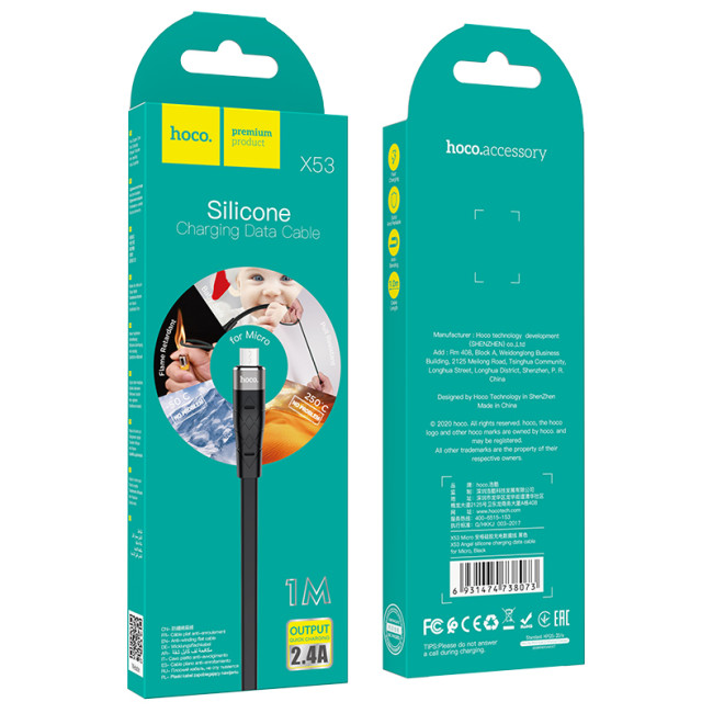 Hoco X53 Angel - це надійний та зручний кабель Micro USB з м’яким плоским проводом із силікону. Він поєднує в собі комфорт, довговічність і високу ефективність заряджання.