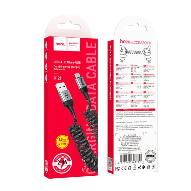 Кабель HOCO Micro USB Nuevo charging data cable X121 |1.5m, 2.4A|
