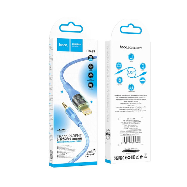 Кабель HOCO 3.5 mm to lightning Transparent Discovery Edition Digital audio conversion cable UPA25 |1M|
