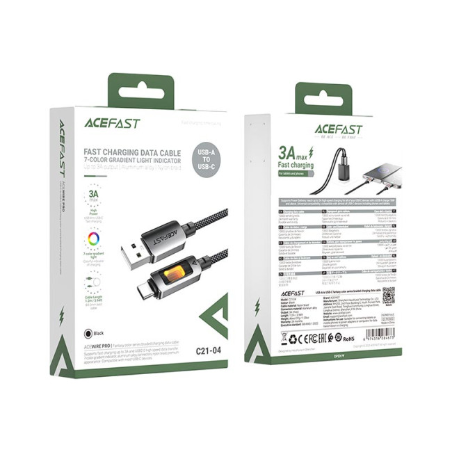 ACEFAST C21-04 - ідеальний кабель для магазинів аксесуарів та електроніки, що поєднує яскравий дизайн, міцність та швидку зарядку, популярний серед користувачів, які цінують стиль та надійність.