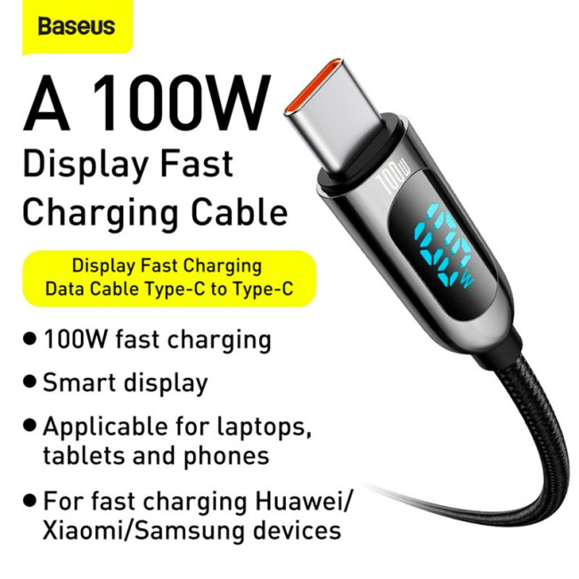 - Кабель Baseus Display Fast Charging Data Cable Type-C to Type-C |1m, 100W/5A|
