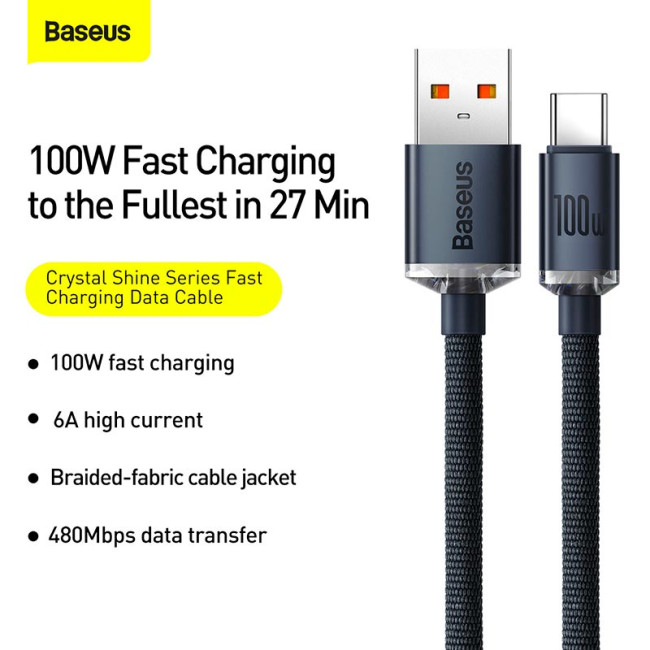 - Кабель Baseus Type-C Crystal Shine Series Fast Charging Data Cable |1.2m, 100W|