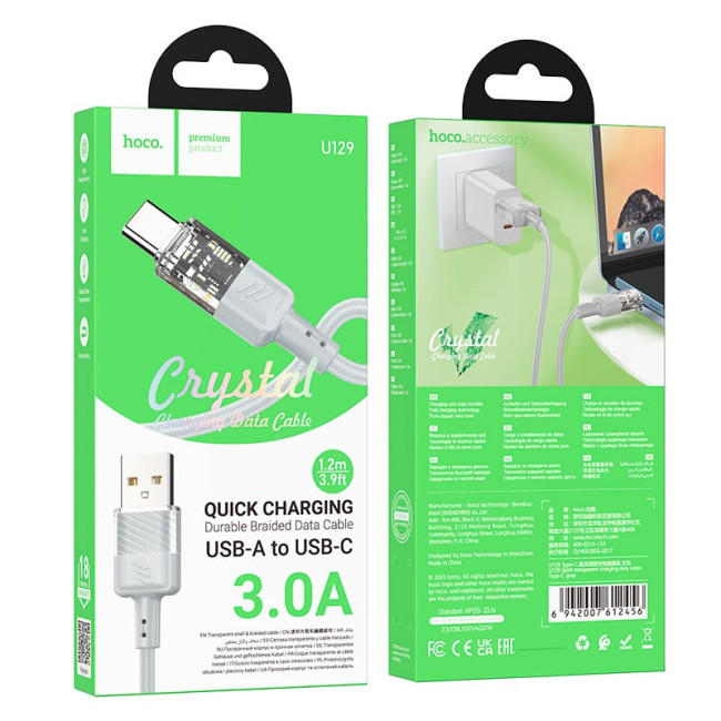 Кабель HOCO Spirit Type-C transparent charging data cable U129 |1.2m, 3A|