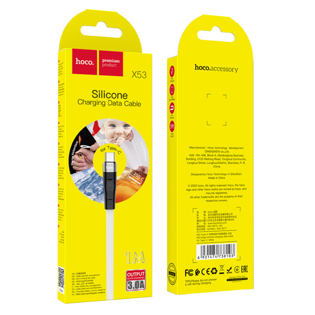 Кабель Hoco Type-C Angel silicone charging data cable X53 |1m, 3A|
