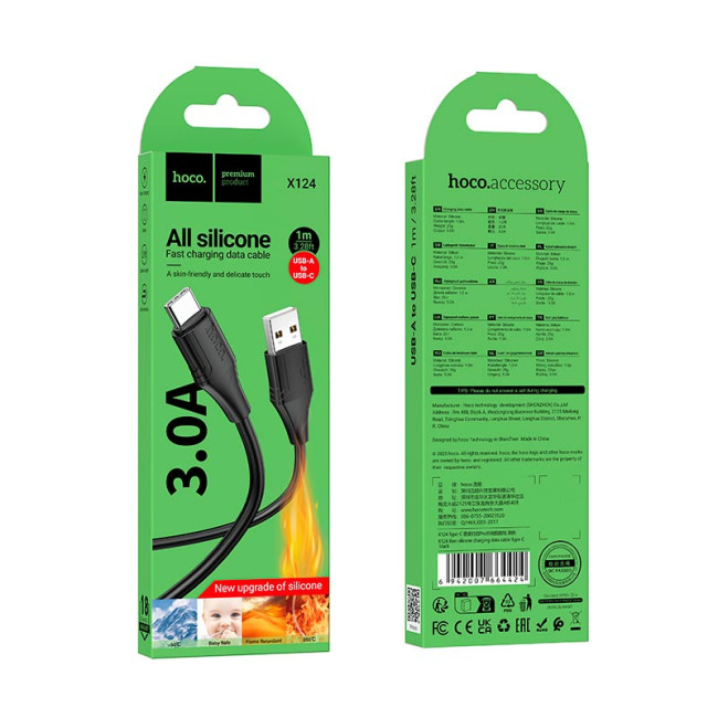 Кабель HOCO Type-C Bien silicone charging data cable X124 |1m, 3A|