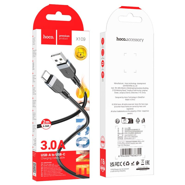 Кабель Hoco Type-C Energy silicone charging data cable X109 |2m, 3A|