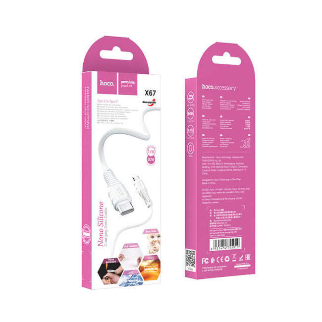 - Кабель Hoco Type-C to Type-C Nano silicone charging data cable X67 |1.2m, 60W, 5A|
