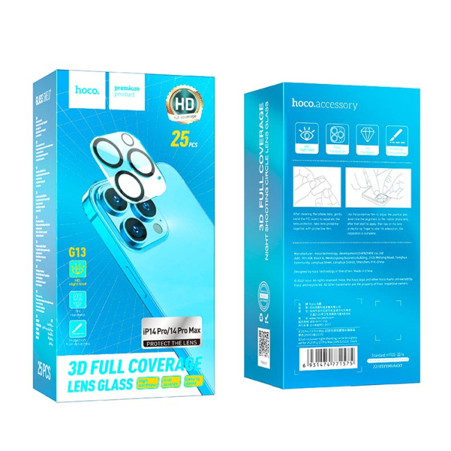 - Захисне скло Hoco 3D all-inclusive night shooting circle Lens glass set для камери iPhone 14pro / 14pro Max (25pcs) (G13)