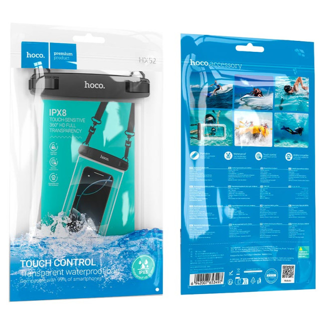 HOCO HX52 - це прозорий герметичний чохол для смартфонів, який забезпечує повний захист пристрою під час купання, подорожей, дощу чи активного відпочинку. Завдяки сертифікованому стандарту IPX68, він витримує занурення у воду та забезпечує збереження функціональності екрана й сенсорів.