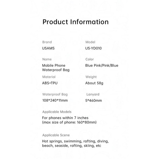 Сумка USAMS Mobile Phone Waterproof Bag IPX8 US-YD010