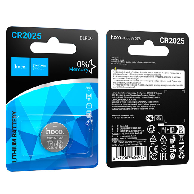 HOCO DLR09 CR2025 — один із найпопулярніших типів літієвих кнопкових батарейок, який широко використовується в автомобільних ключах, годинниках, пультах дистанційного керування та іншій електроніці. Завдяки стабільній якості бренду HOCO та високому попиту на формат CR2025 товар добре підходить для магазинів електроніки, мобільних аксесуарів, автотоварів і побутової техніки.