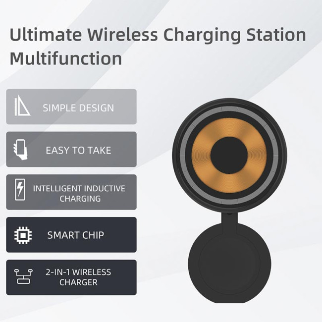 - Зарядка Qi 2 in 1 Transparent Magnetic Wireless Charger Q4A |15W, Phone/AirPods|