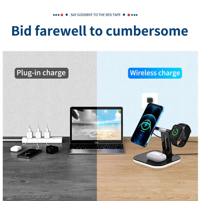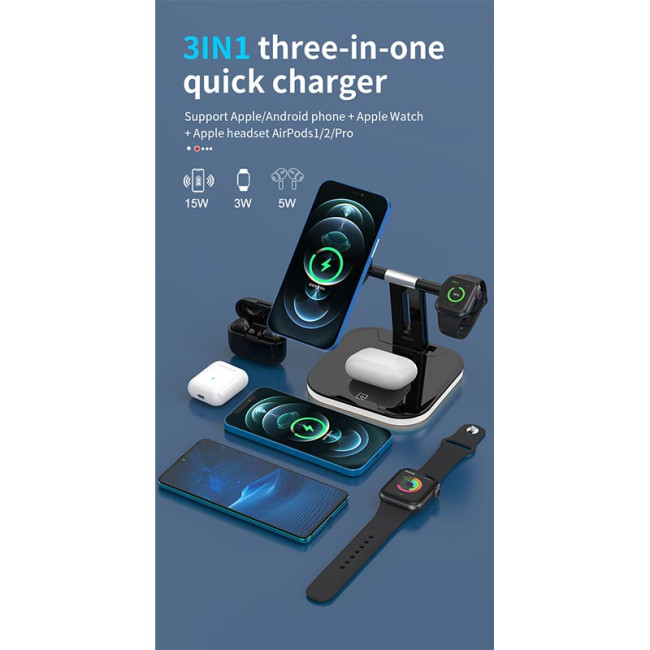 Зарядка Qi 3in1 LED Magnetic wireless charger JYD-WC101 |15W Max|