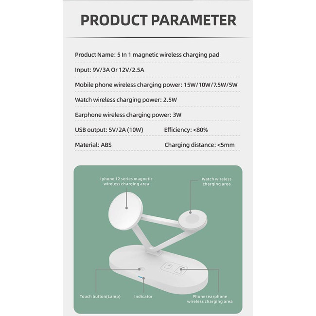 Зарядка Qi 3in1 Magnetic wireless charger JYD-WC126 |5-15W|