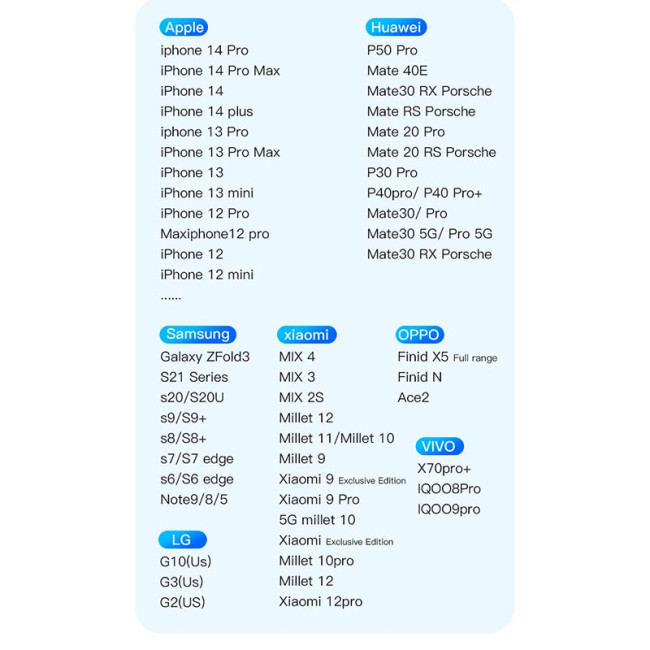| БрендПотужність (W)Швидка зарядка QC / PDКабель в комплектіКолір |