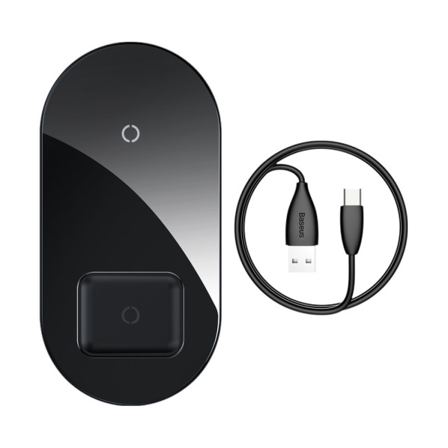 Baseus Simple 2in1 Wireless Charger - це універсальна бездротова зарядна станція, яка дозволяє одночасно заряджати смартфон та навушники. Завдяки мінімалістичному дизайну та високоякісним матеріалам вона ідеально впишеться в будь-який інтер’єр.
