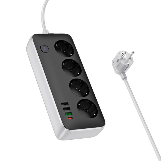 - Подовжувач Hoco Sunlight 4-bit desktop socket (L=3M) AC22 |3USB/1Type-C, 30W/3A, PD/QC|