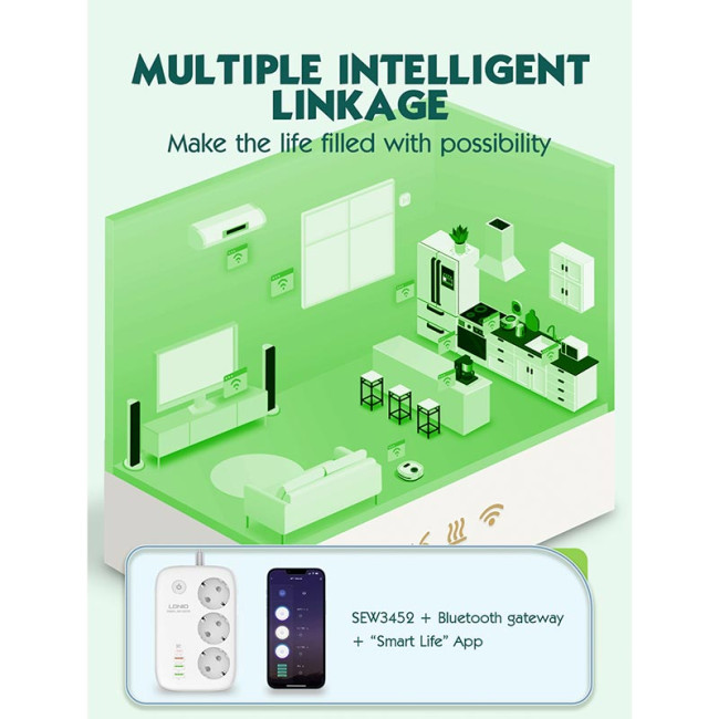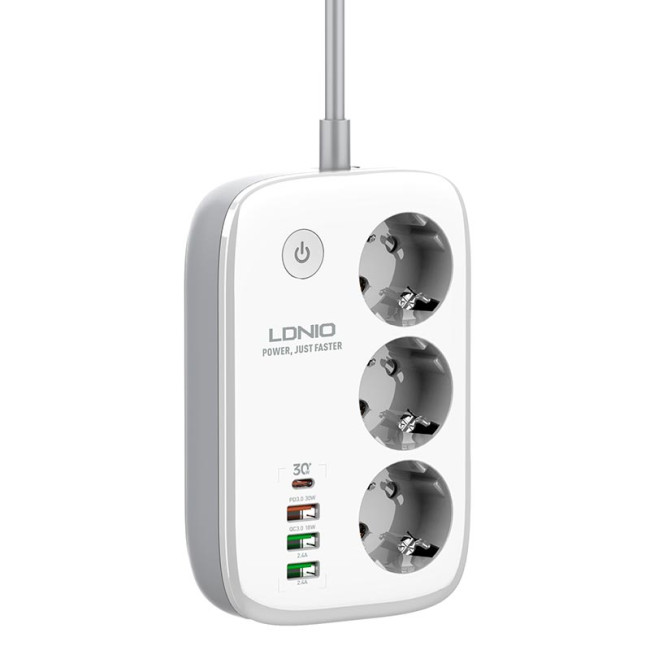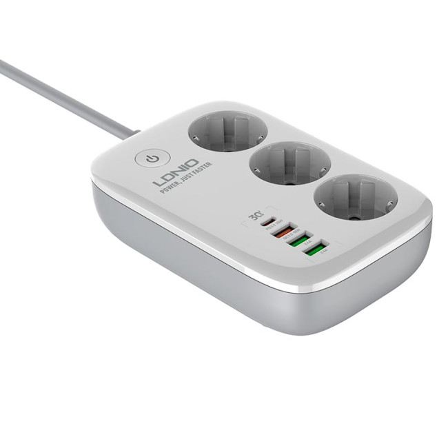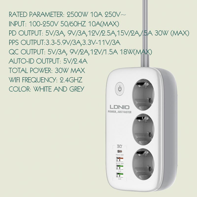 - Подовжувач мережевий LDNIO c Wi-Fi SEW3452 |3USB/1Type-C, 3Sockets. QC/PD, 30W/10A, 2m EU Plug|