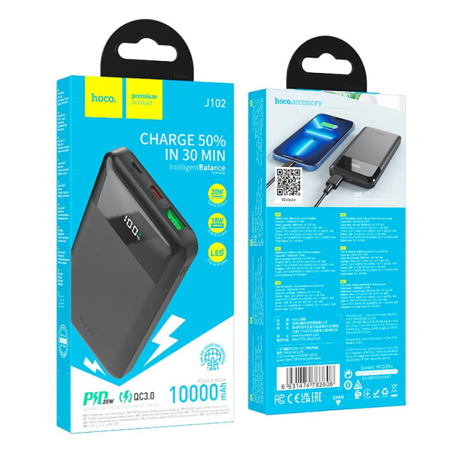 HOCO J102 — практичний портативний акумулятор із підтримкою швидкої зарядки та популярною ємністю 10000mAh. Завдяки наявності портів USB-A та Type-C, LED-дисплею та сучасним стандартам заряджання модель має стабільний попит у категорії мобільних аксесуарів.