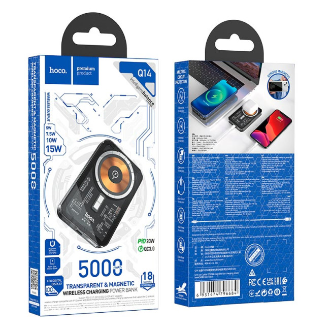 - УМБ HOCO Ice Crystal magnetic fast charging power bank Q14 5000mah |Type-C, QC/PD, 20W/3A|