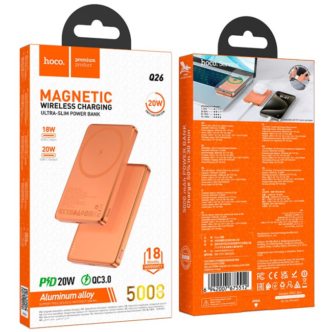 HOCO Joy PD magnetic fast charging power bank Q26 5000mAh |1Type-C, 20W/3A, PD/QC|