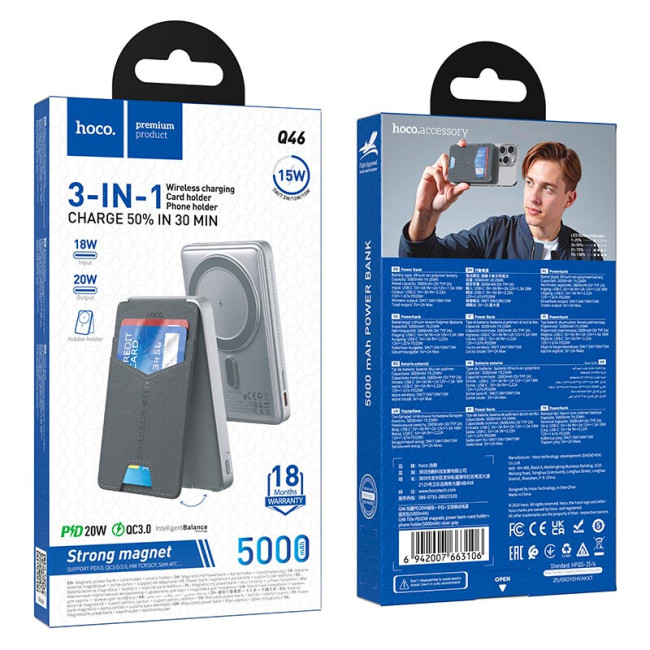 УМБ HOCO Title magnetic power bank+card holder+phone holder Q46 - універсальне рішення для зарядки та організації