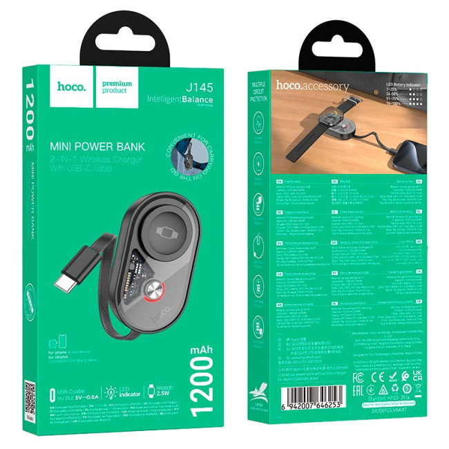 УМБ HOCO Whale power bank with wireless charger for iWatch J145 1200mAh