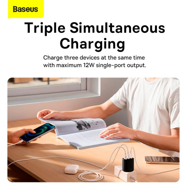 Адаптер мережевий Baseus Compact Charger 3U 17W EU |3USB, QC, 3.4A| (CCXJ020102)