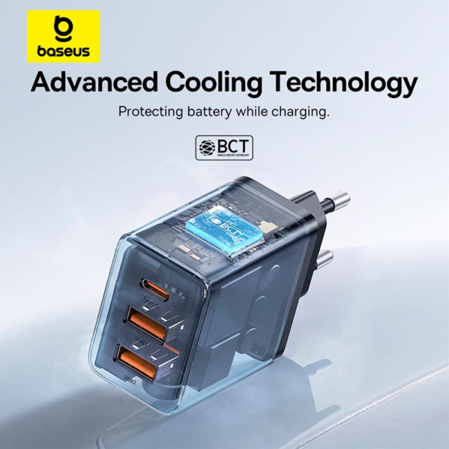 Адаптер мережевий Baseus Cube Fast Charger |2USB/1Type-C, 30W/3A, PD/QC|
