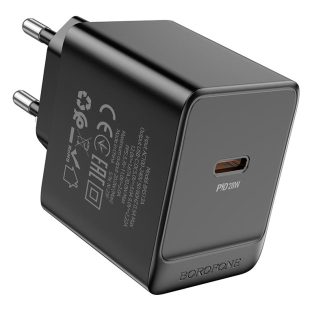 Адаптер мережевий Borofone Erudite single port charger BAS13A |1Type-C, 20W/3A, PD/QC|