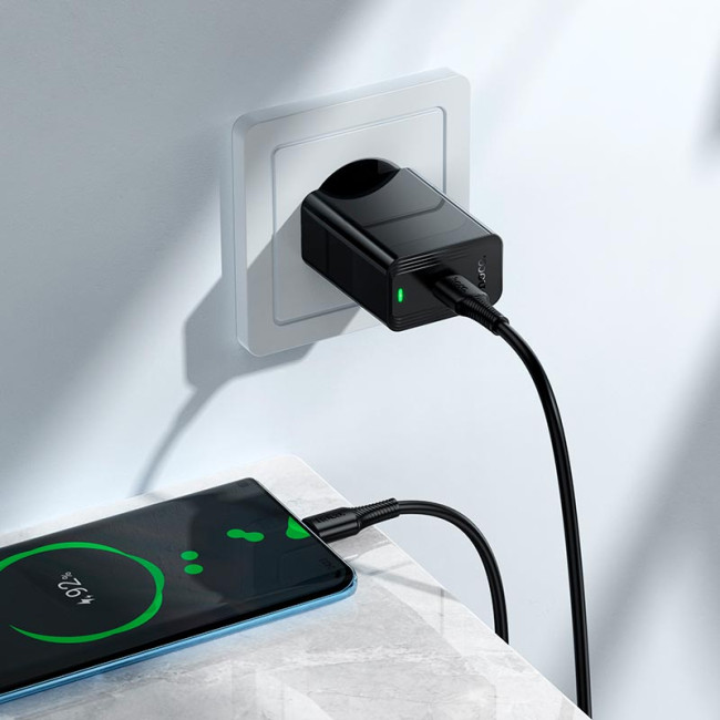 - Адаптер мережевий HOCO C to C cable Leader single port charger set CS93A |1Type-C, 20W/3A, PD|