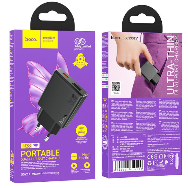 Hoco Delgado N38 - ідеальний вибір для тих, хто шукає компактний, швидкий та надійний зарядний пристрій для своїх пристроїв.