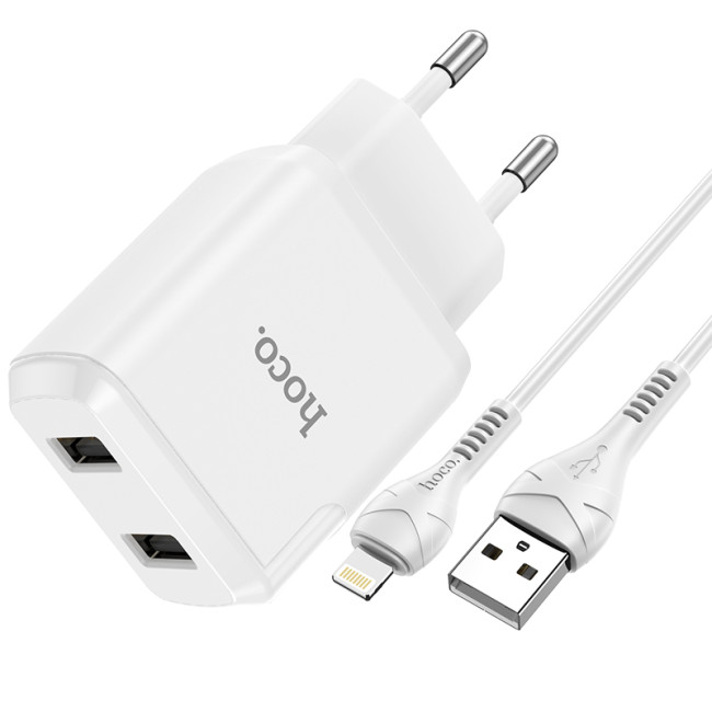 Адаптер мережевий HOCO Lightning cable Speedy dual port charger set N7 |2USB, 2.1A| (Safety Certified)