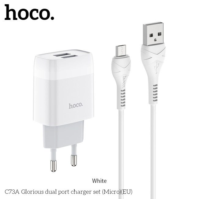 Адаптер мережевий Hoco Micro USB Cable Glorious C73A |2USB, 2.4A|