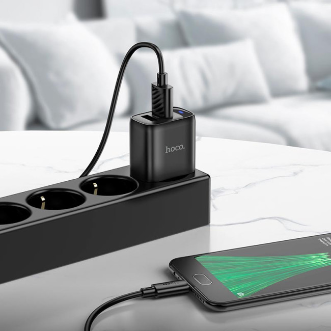Адаптер мережевий HOCO Micro USB Cable Smart dual-port charger C141A |2USB. 2.1A/10.5W|