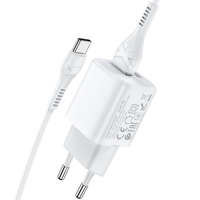 Адаптер мережевий HOCO Type-C Cable Briar dual port charger set N8 |2USB, 2.4A| (Safety Certified)
