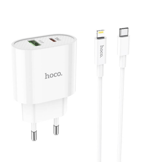 Адаптер мережевий Hoco Type-C to Lightning Cable Lineal C95A |1USB/1Type-C, PD/QC, 20W/3A|