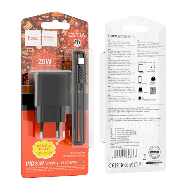 HOCO Ocean CS13A - ідеальне рішення для тих, хто шукає якісний зарядний адаптер із швидкою зарядкою та зручним кабелем у комплекті!